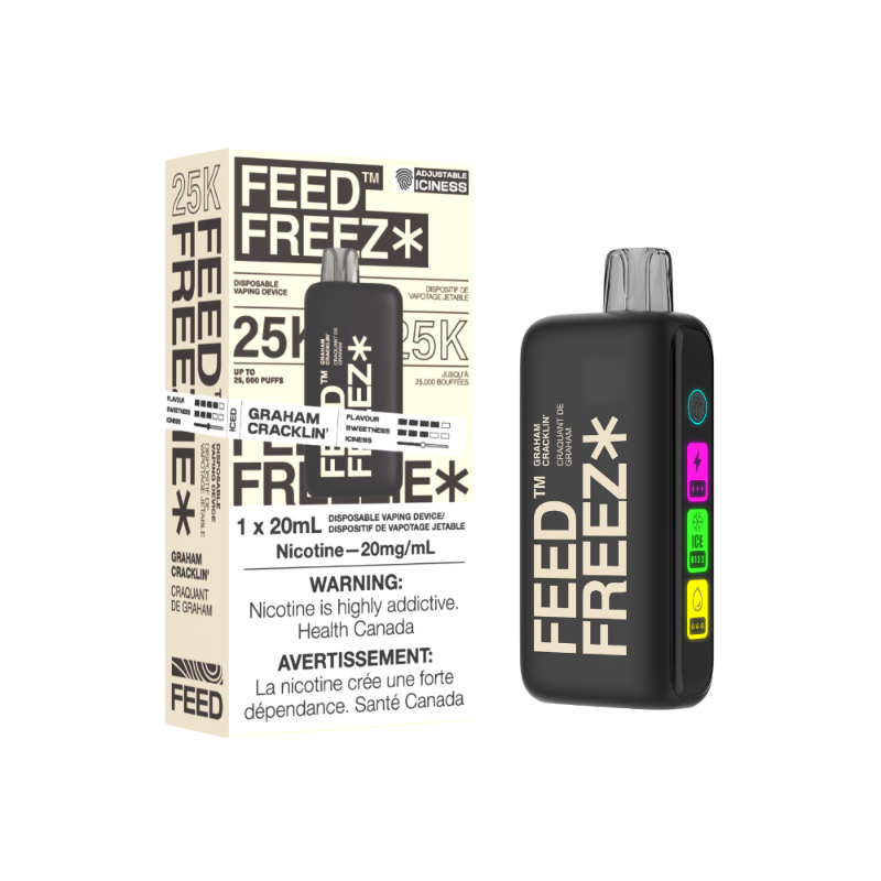Experience ultimate coolness with the new FEED Freez 25K Disposable Vape! This powerhouse of technology is making its debut in the Canadian market, pushing the boundaries with features and innovations never before seen. We are excited to introduce FEED's Freez 25K Disposable Vape to you!