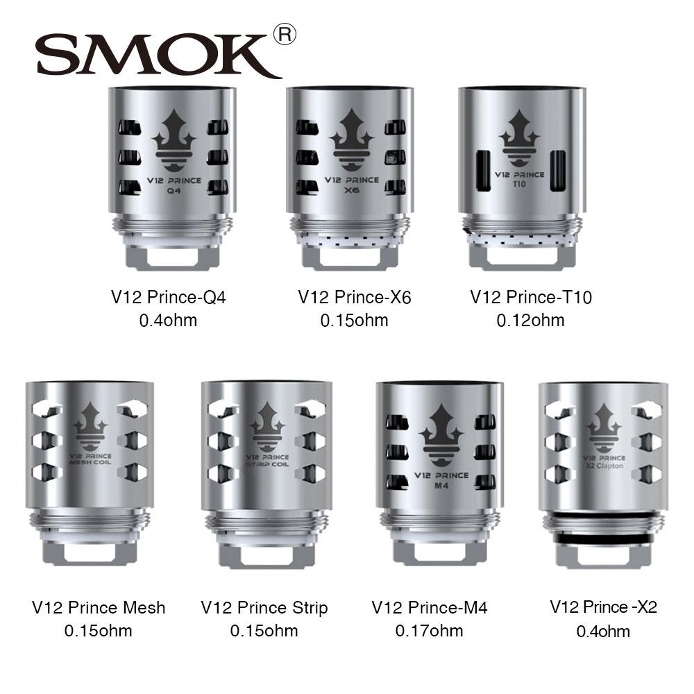 The brand new SMOK Replacement Coils are designed for TFV12 PRINCE Tank with intense clouds and accurate flavor. There are V12 Prince-Q4 0.4ohm, V12 Prince-X6 0.15ohm, V12 Prince-T10 0.12ohm and V12 Prince-M4 0.17ohm for your selection. 3pcs each pack. Just get them for your TFV12 PRINCE to enjoy happy vaping! TPD Version and Standard Version are available.